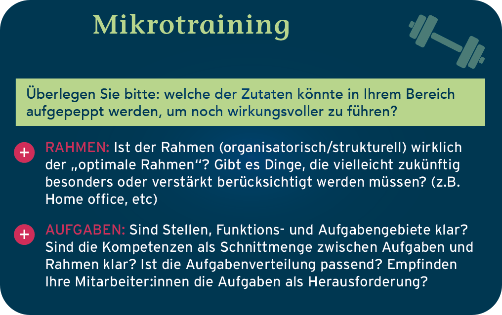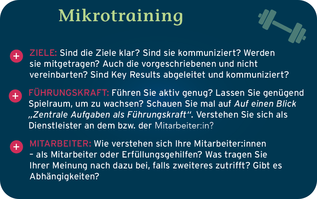 Sie finden hier komprimierte Zusammenfassungen, strukturierende Übersichten und konkrete Impulse, die eine direkte Übertragung in den Führungsalltag ermöglichen und unterschiedliche Arbeitssituationen berücksichtigen.