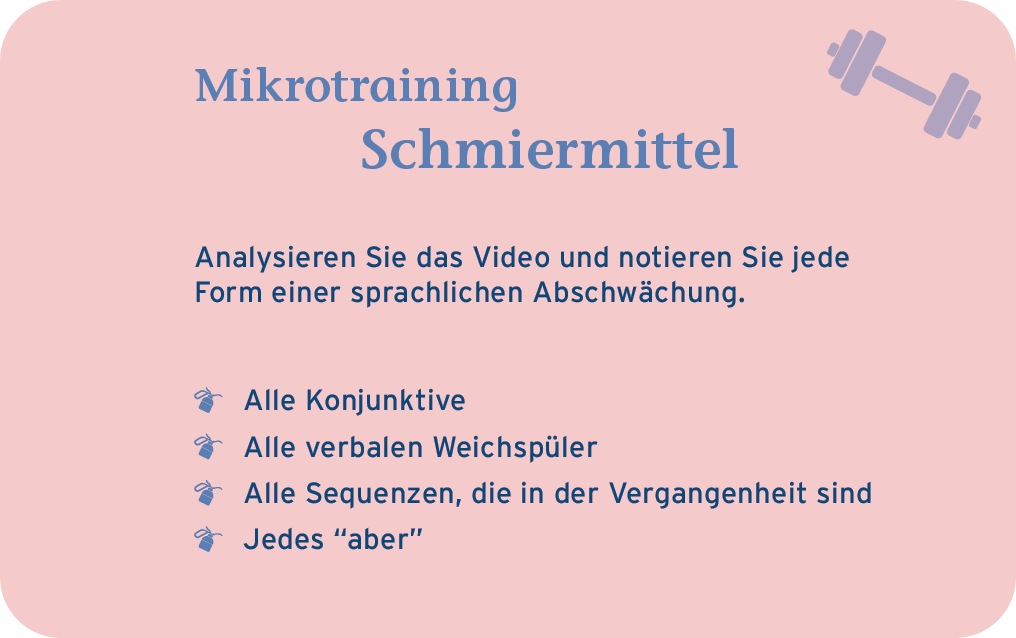 Schmiermittel sind sprachliche Weichmacher, die Aussagen angenehmer klingen lassen indem sie Reibung aus Gesprächen nehmen – und dadurch auch Verbindlichkeit. Was freundlich gemeint ist, wird so schnell unklar. Deshalb schauen wir genau hin, wo Sprache abschwächt statt führt.