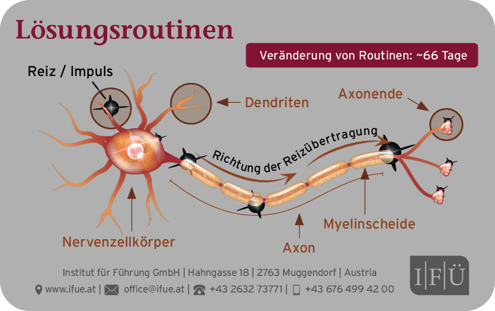 Lösungsroutinen entstehen durch Wiederholung. Jeder bewusst gesetzte Führungsimpuls stärkt neuronale Verbindungen – jeder vermiedene schwächt sie. Verhalten wird nicht durch Einsicht stabil, sondern durch konsequente Praxis. Wer anders führen will, muss anders handeln – und es lange genug tun, bis es selbstverständlich wird. Veränderung ist kein Ereignis, sondern eine trainierte Routine.